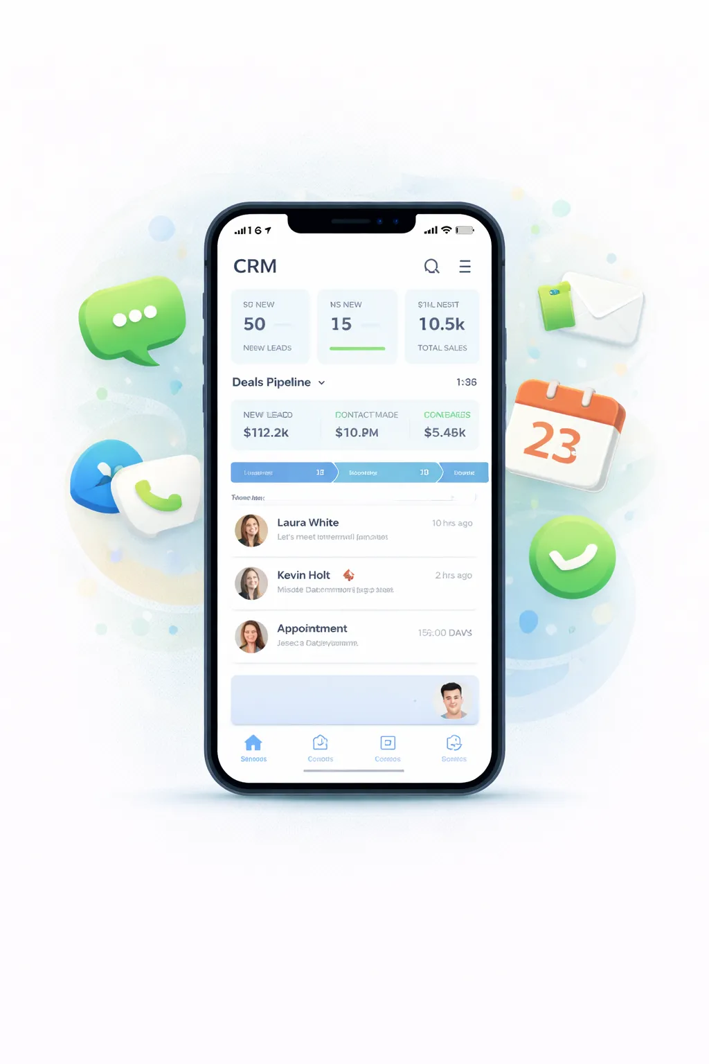 The mobile app gives you full access to your CRM on the go, allowing you to manage contacts, respond to calls, texts, and emails, and track opportunities from anywhere. Get real-time notifications, view conversation history, and book or update appointments instantly. Stay connected, responsive, and in control of your business—right from your phone.